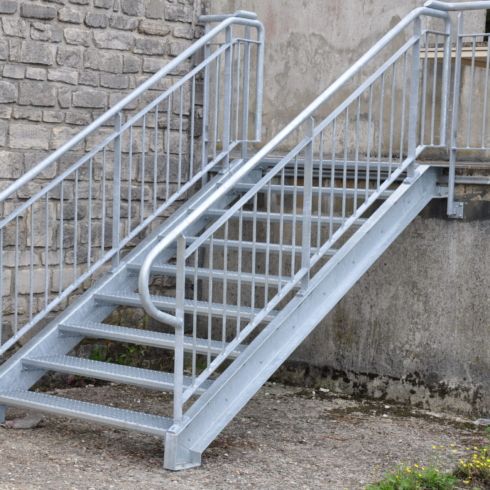 Escalier métallique galvanisé avec garde-corps et marches tôle larmée Escaliers Métalliques - Structures Métalliques